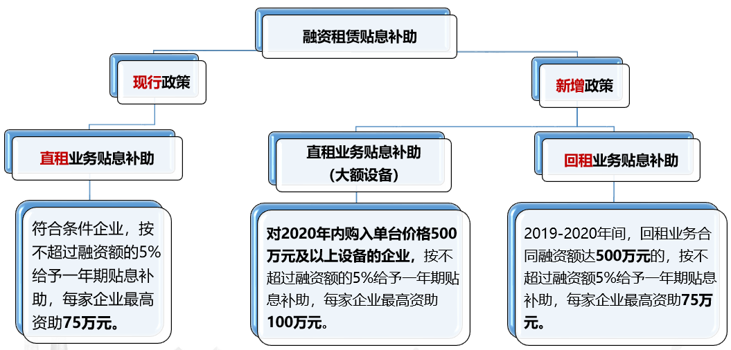 備注: (1)直租貼息補(bǔ)助,按照“就高不就低”原則,同一設(shè)備原則上只能享受一次融資租賃補(bǔ)貼政策。 (2)回租貼息補(bǔ)助,涉及的設(shè)備如已獲得其他財(cái)政資助,原則上不再重復(fù)享受貼息政策。 |